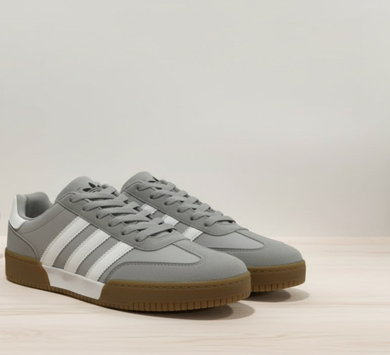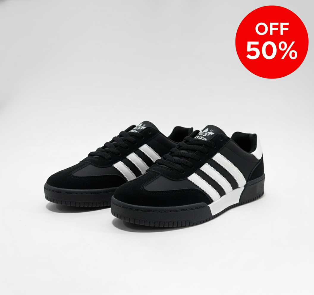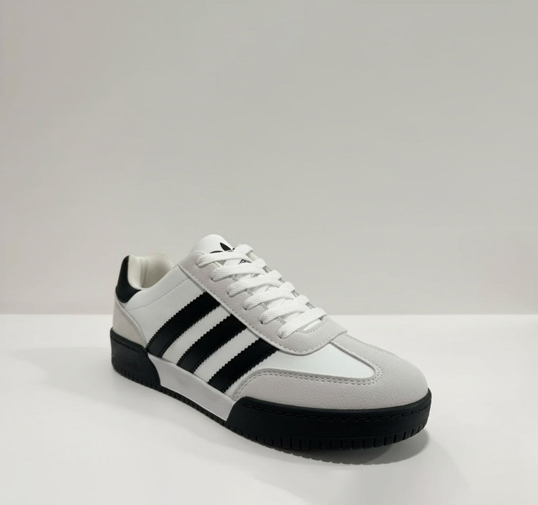 يأتي هذا الحذاء بتصميم جانبي كلاسيكي مع ثلاثة خطوط أنيقة، ومتوفّر بثلاثة ألوان تناسب جميع الأذواق: الأسود – الأبيض – الرمادي.